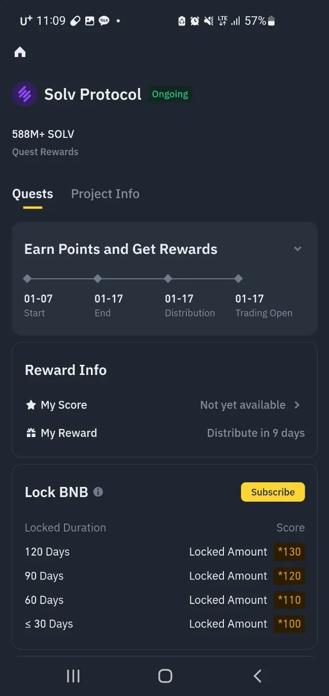 (7) 안내에 따라 Solv 댑으로 이동 후 BTCB를 예치하고 메가드롭 참여