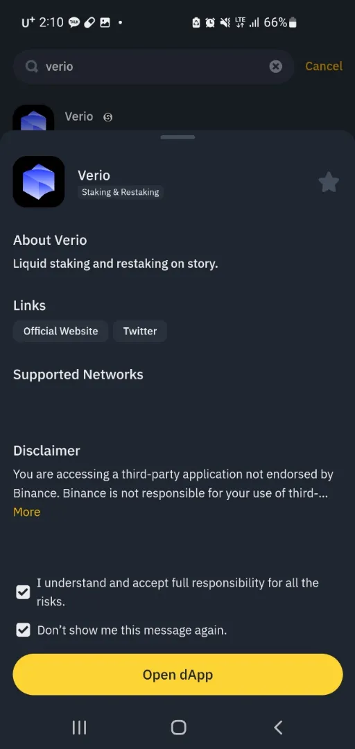 (3) 체크박스 체크 후 'Open dApp' 클릭