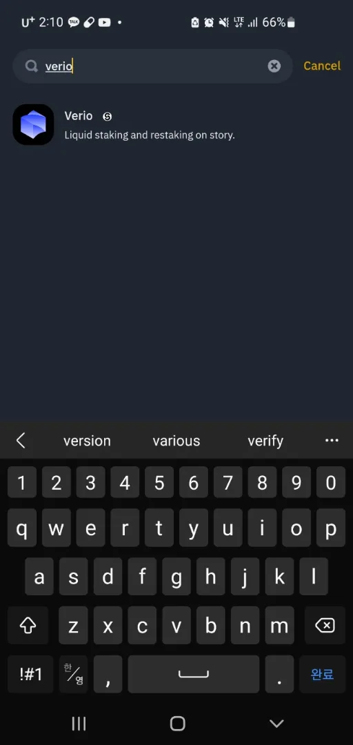 (2) 하단의 'Discover' 탭 클릭 후 검색창에 'verio' 검색
