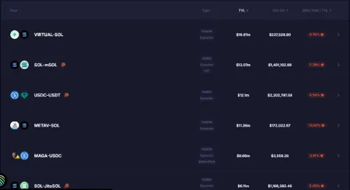 (3) “Dynamic Pools”, “Pools with Farms”, “LST Pools”, “Multi-token Pools” 중 예치를 원하는 풀 선택