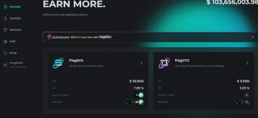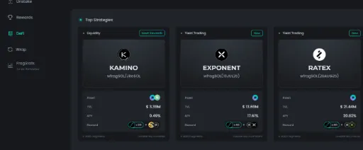 (3) 화면 좌측 'DeFi' 탭으로 이동 후 앞서 수령한 fragSOL을 이용해 리스테이킹