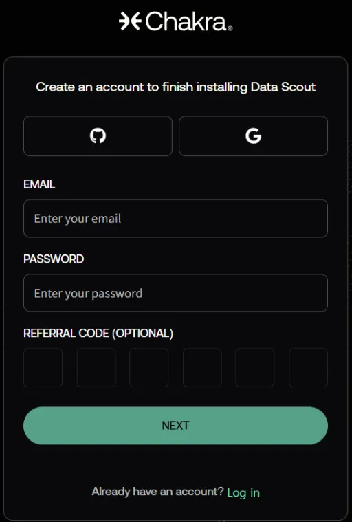 (1) 👉차크라 랩스 웹사이트👈로 이동 후 이메일 계정을 이용해 회원가입