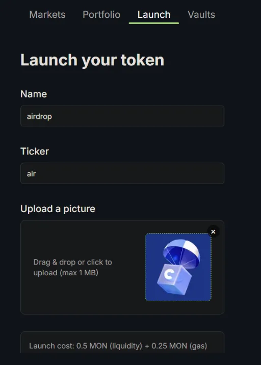 (5) 'Launch' 탭에서 자신만의 토큰 런칭하기