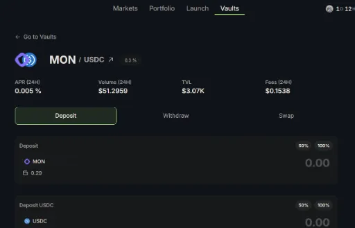 (6) 'Vaults' 탭에서 유동성 공급하기