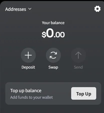 (3) 우측 상단 지갑 버튼을 클립 후 소량의 자산 입금