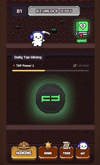 (3) 화면 가운데 코인 버튼을 탭하여 포인트 채굴