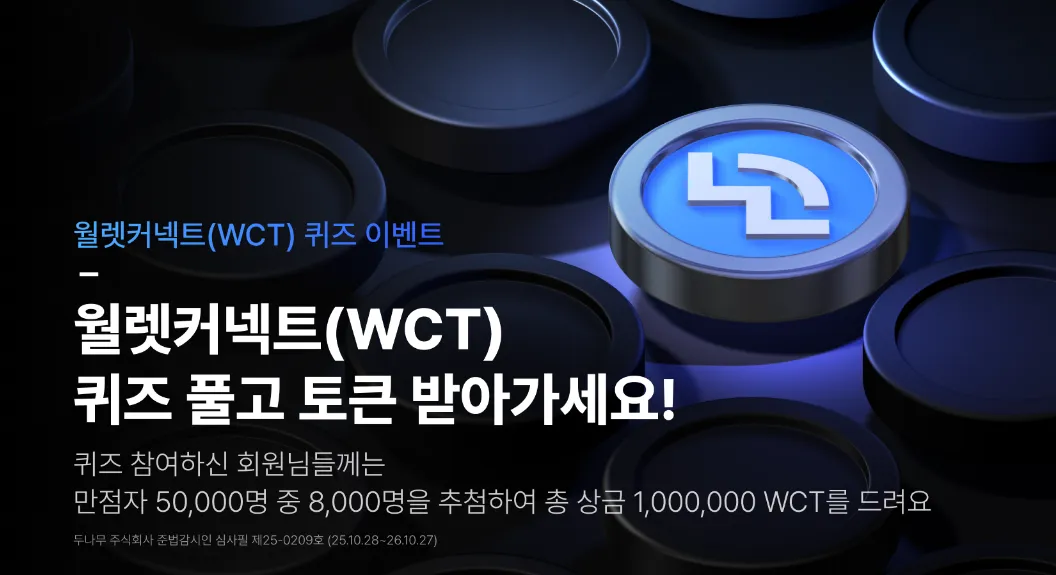 ✅ 퀴즈 선착순 만점자 50,000명 중 8,000명을 추첨하여 125 WCT를 드립니다.