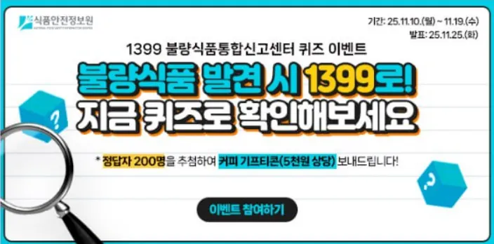 🔘 1399 전화 외에도 인터넷(식품안전나라), 모바일앱(내손안 식품안전정보)을 통해 신고 할수 있다