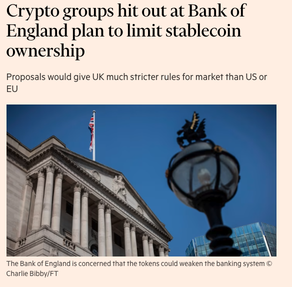 영국 중앙은행이 개인 및 기업의 스테이블코인 보유량을 제한하는 초강경 규제안을 추진하기로 결정하면서 업계와 극심한 마찰을 빚고있다고 파이낸셜타임즈가 보도했다. 규제 대상은 영국 결제에서 사용되고 있거나 사용될 가능성이 있는 모든 스테이블코인이다. 개인은 1만~2만 파운드(1882만~3764만원)까지, 기업은 1000만 파운드(188억원)까지만 보유할 수 있다. 매체는 “현지 암호화폐 업계는 이 계획으로 인해 영국이 다른 국가들보다 뒤처지는 상황에 놓일 것이라고 지적하고 있다. 특히 해당 규제안을 시행하는 것 자체도 행정적으로 쉽지 않고 과도한 비용이 투입한다고 비판한다. 그럼에도 영국 중앙은행은 스테이블코인이 은행의 예금 감소에 타격을 줄 것이고 이로 인해 개인 및 기업 대출에도 부정적 영향을 줄 수 있다고 판단하고 있다. 아울러 현재 스테이블코인 및 토큰화를 적극 지원하려는 영국 재무부와 이에 반대하는 중앙은행이 대립각을 세우고 있는 상황”이라고 설명했다.