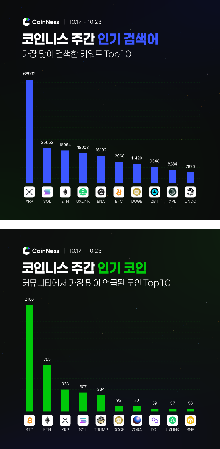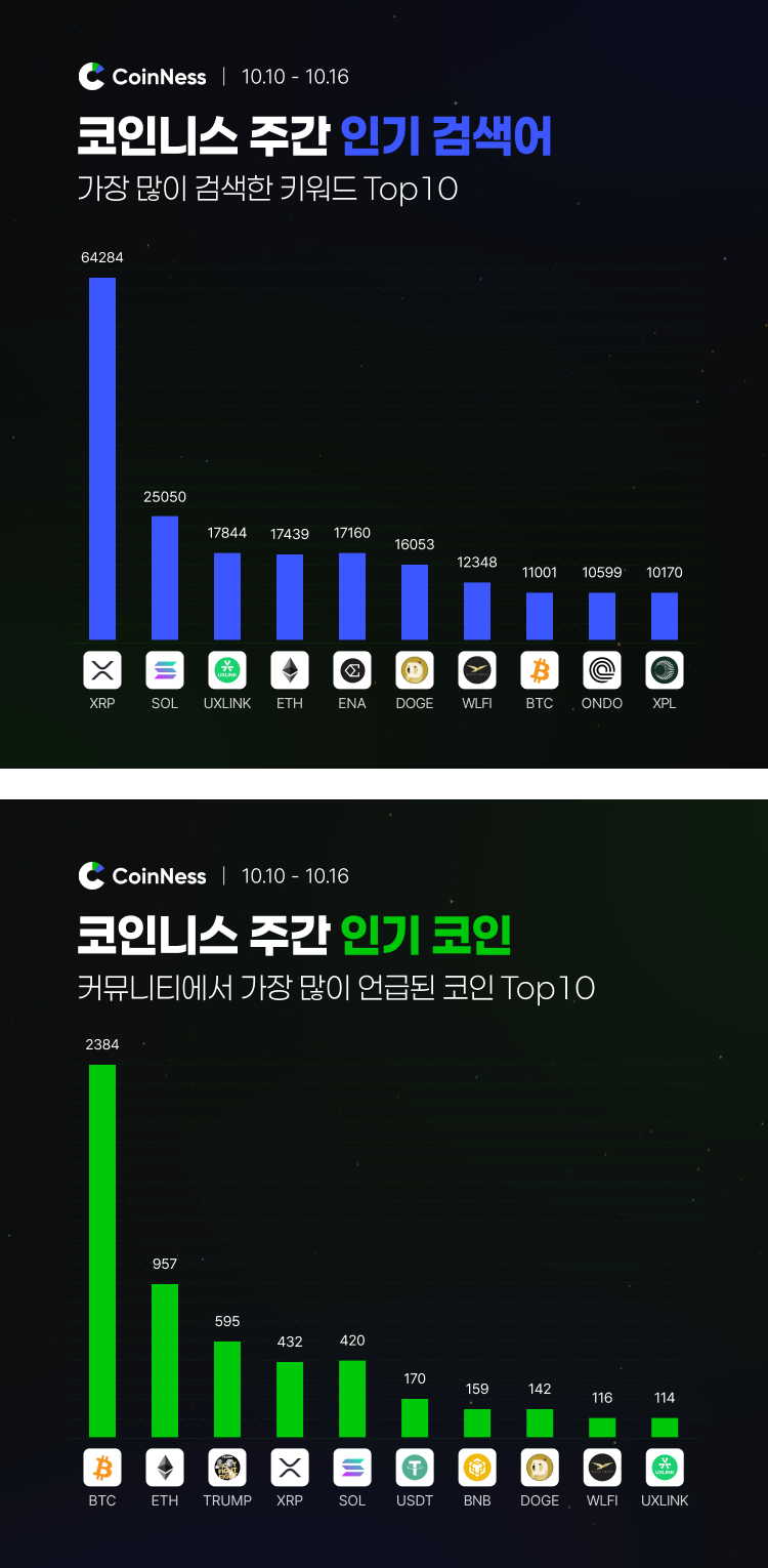 코인니스에서 이번 주(10/10~10/16) 가장 많이 검색되고 이슈가 된 키워드는 다음과 같다.
