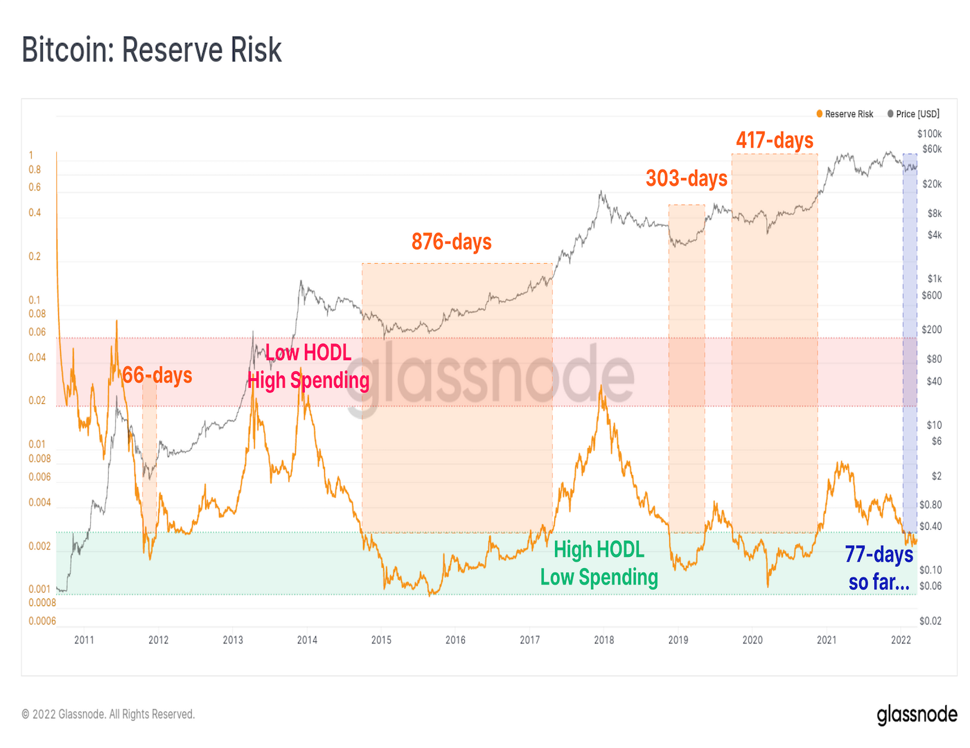 암호화폐 전문 미디어 코인데스크가 암호화폐 온체인 데이터 분석 업체 글래스노드를 인용 "비트코인 리저브 리스크(Reserve Risk) 지표가 0.0024를 기록, '장기 매집' 적기를 나타내는 녹색 영역에 진입했다"고 5일 보도했다. 리저브 리스크는 장기 보유자의 '확신'을 기반으로 비트코인 할당의 리스크-보상 비율을 가시화한 수치다. 해당 지표는 차익 실현의 유혹에 저항하는 장기 보유자와 시장 가격이 제공하는 인센티브를 비교해, 수치가 낮을 수록 투자자의 매집과 장기 보유 성향이 도드라짐을 의미한다. 코인마켓캡 기준 BTC는 현재 1.57% 오른 46,641.84 달러에 거래되고 있다.