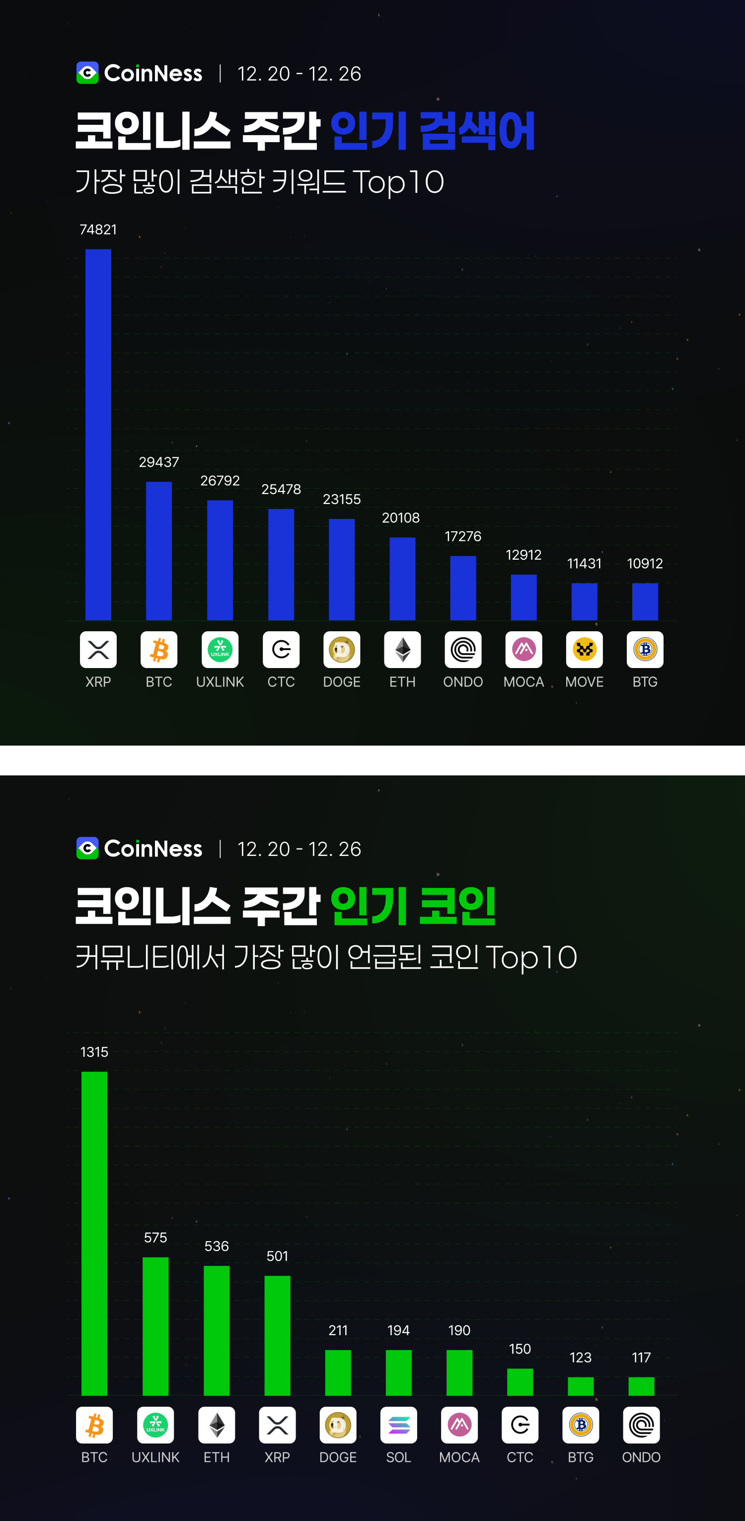 코인니스에서 이번 주(12/20~12/26) 가장 많이 검색되고 이슈가 된 키워드는 다음과 같다.