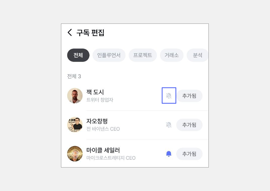 2. 구독 중인 피드 항목 옆의 ‘종(🔔)’ 아이콘을 클릭해서 알림을 설정하세요.