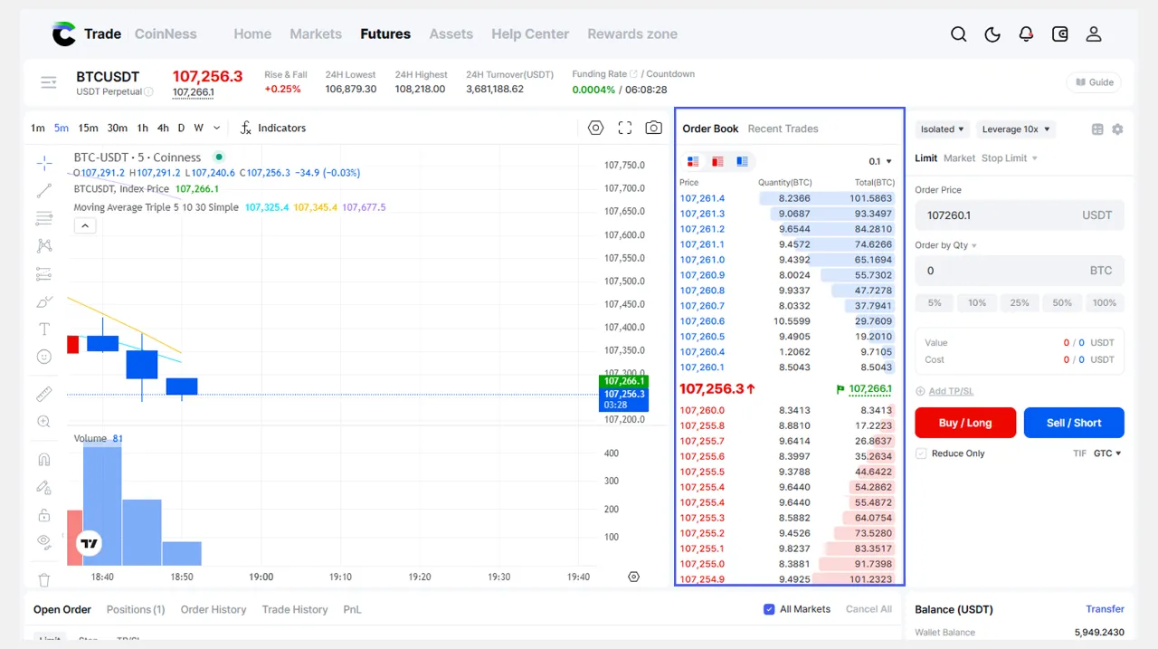 | รวม (Total) | มูลค่ารวมของคำสั่งในหน่วย USDT |