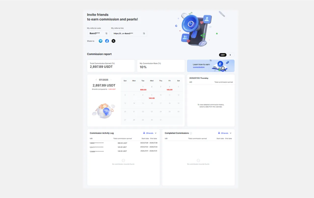 Hãy sử dụng liên kết giới thiệu được cung cấp để mời bạn bè—khi họ đăng ký qua liên kết đó, bạn sẽ tự động được tính là người giới thiệu của họ.