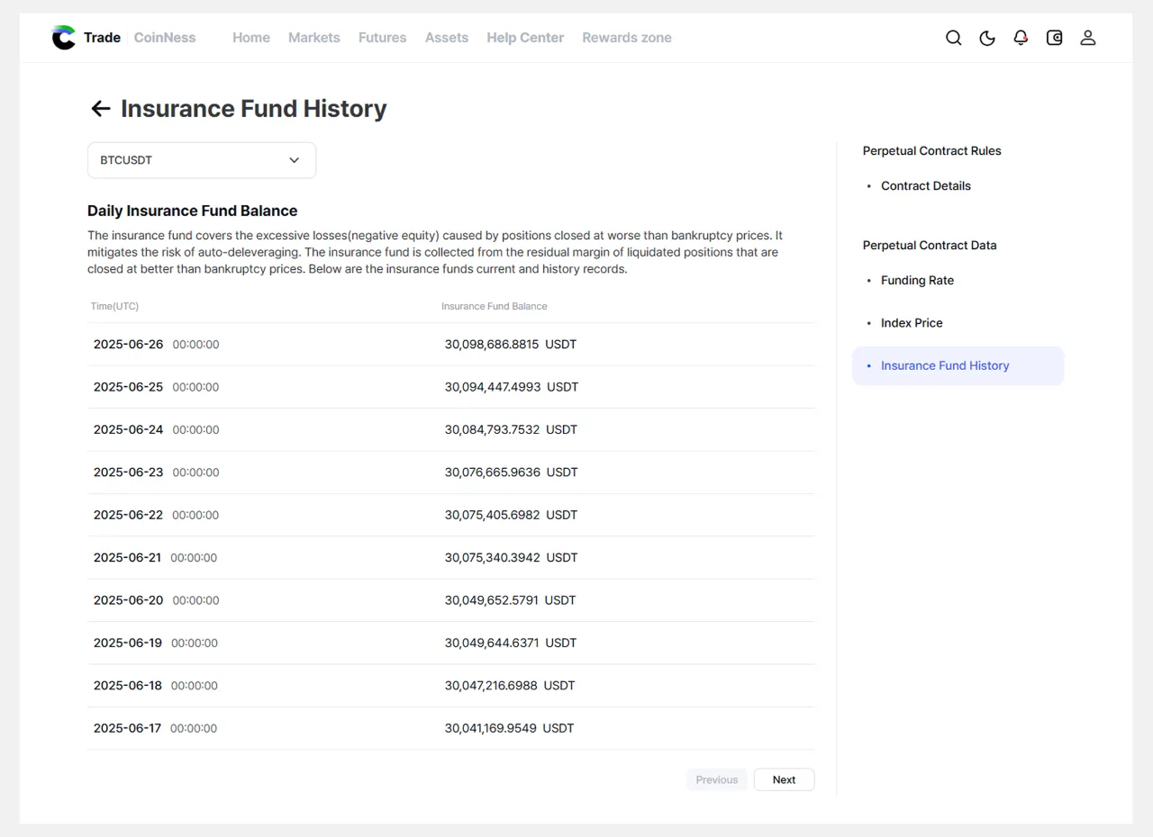 ⚠️ Quỹ bảo hiểm được cập nhật mỗi ngày một lần vào lúc 00:00 UTC.