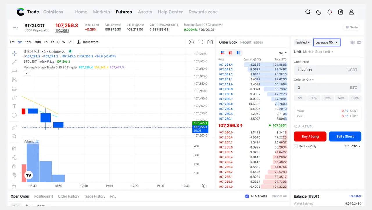 2. Chọn cặp giao dịch (ví dụ: BTCUSDT)