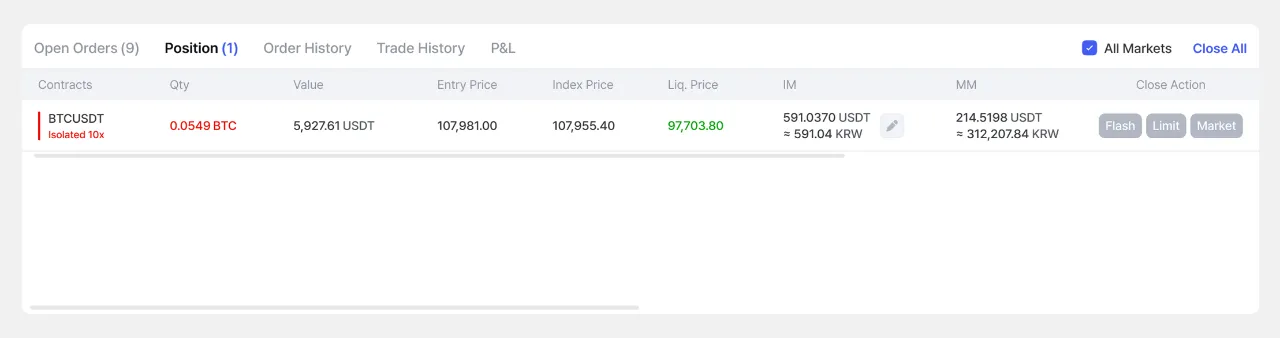 • Vị thế bị cưỡng bức đóng theo giá thị trường, và phần ký quỹ còn lại sẽ được hoàn trả cho người dùng sau khi trừ chi phí thanh lý.