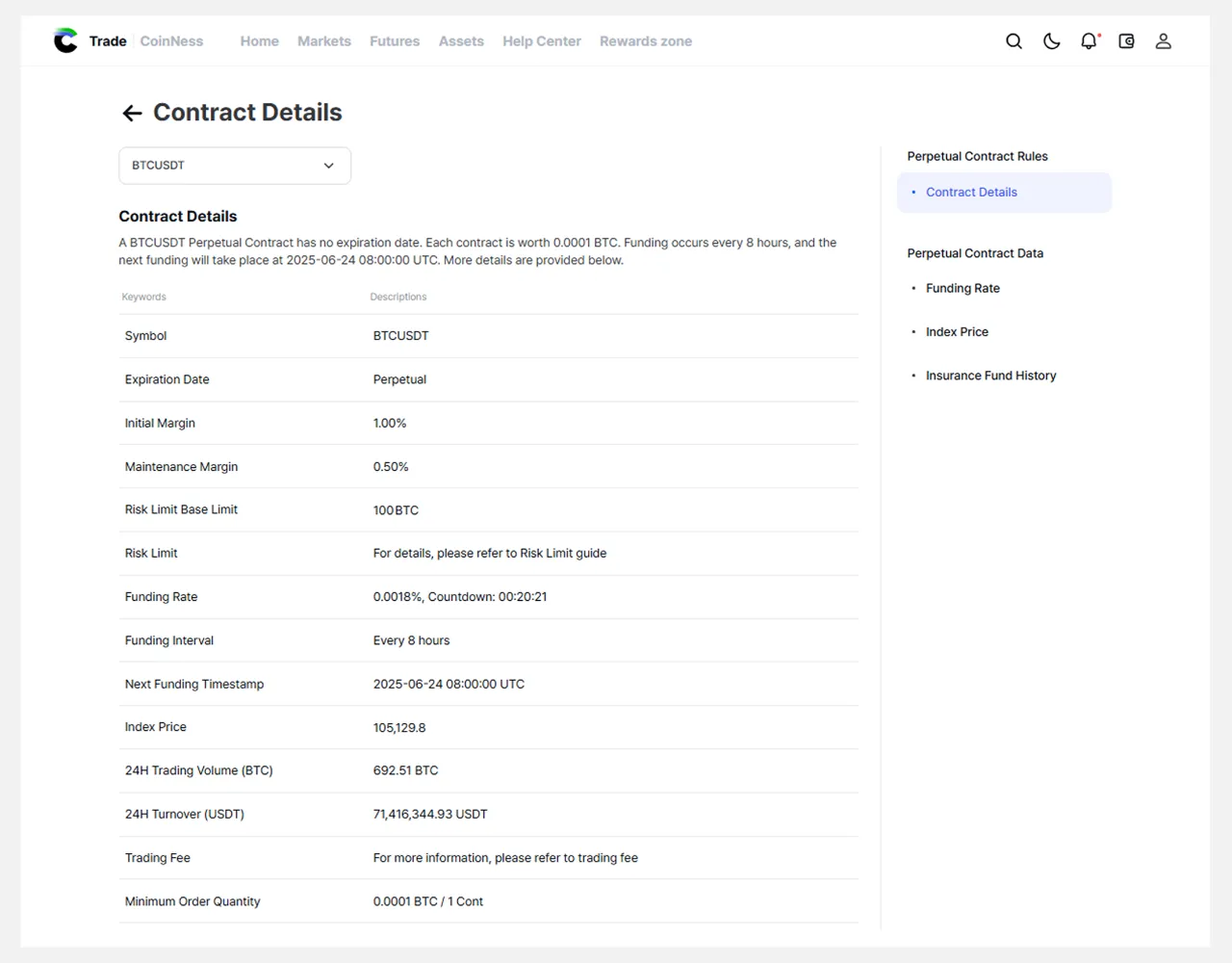 | BTCUSDT | 0.0001 | 1 合约 = 0.0001 BTC |