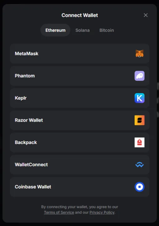 (2) Log in through wallet connection