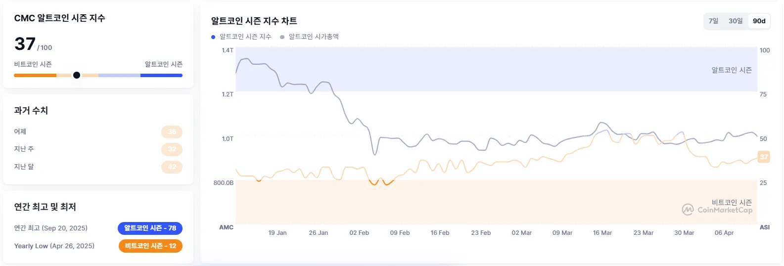 The Altcoin Season Index from crypto data platform CoinMarketCap is currently at 37. The index is calculated by comparing the price performance of the top 100 cryptocurrencies by market capitalization, excluding stablecoins and wrapped tokens, against that of Bitcoin. An altcoin season is declared when 75% of these top 100 coins outperform Bitcoin over the preceding 90 days; otherwise, it is considered a Bitcoin season. A score closer to 100 indicates a stronger altcoin season.