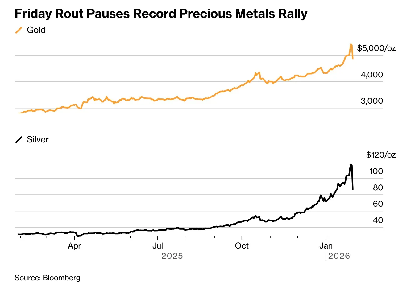 A sharp drop in the prices of precious metals such as gold and silver on Jan. 30 was due to a rally in the U.S. dollar, according to a Bloomberg analysis. The dollar's strength was triggered by U.S. President Donald Trump's confirmation of Kevin Warsh as his nominee for the next Federal Reserve Chair. On that day, the price of gold fell more than 12% to below $5,000 per ounce, while silver plunged by as much as 36%.