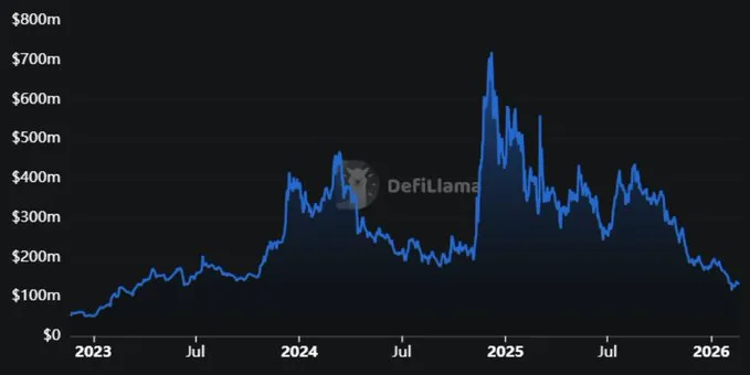 Cardano's (ADA) Total Value Locked (TVL) has fallen to $115 million, its lowest level since 2023, Unfolded reported, citing data from DefiLlama.