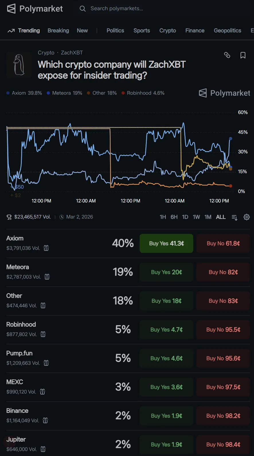 On-chain analyst ZachXBT has identified the project he previously flagged for insider trading as Axiom, a Solana-based trading platform. ZachXBT alleged that several Axiom employees, including Broox Bauer, used internal access to view the private wallet addresses and activities of specific whale users and high-profit traders. He claimed they tracked these users' trades in real time to inform their personal trading, thereby securing illicit profits. The analyst added that the employees managed and shared a Google Sheet listing the wallet addresses of various KOLs, compiled from data extracted from an internal dashboard. This activity has allegedly been ongoing for over a year, since early 2025.